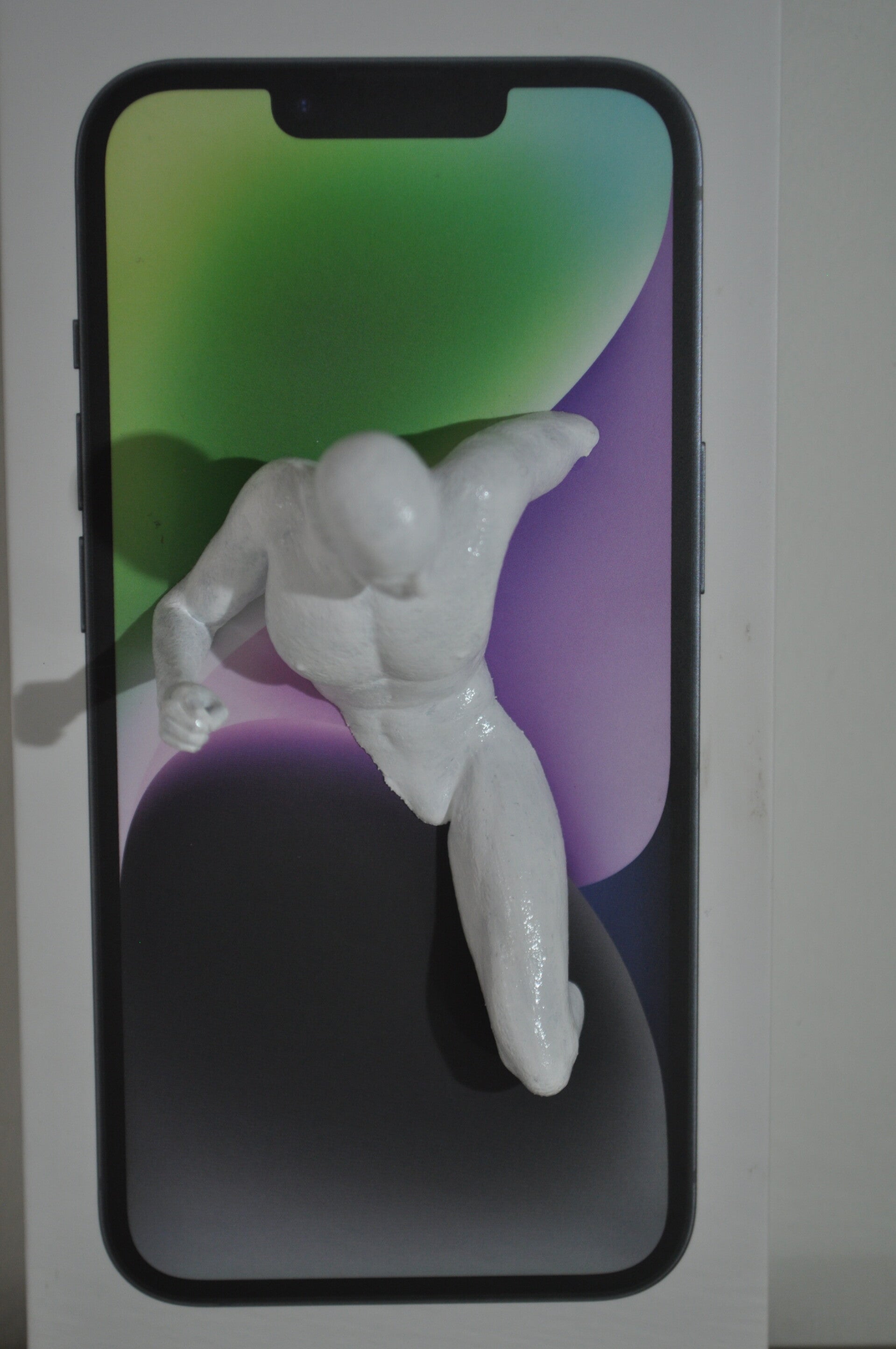 Ontsnap aan je telefoon! Escape laat zien hoe je dat doet. Mooi werk dat zowel opgehangen als neergezet kan worden. De grootte is de maat van een I phone doosje.
